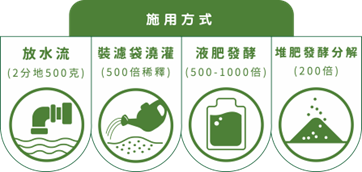 龍瑩木黴一號的主要功能包括加速纖維素分解、釋放土壤中固定的磷肥、提升肥料使用效率及去除異味。施用方式靈活: