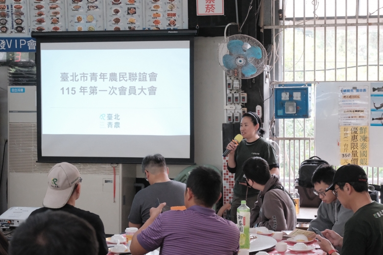臺北市青年農聯誼會於3月底辦理第一次會員大會暨春酒晚宴,活動特別選在士林區具備在地文化特色之至善釣蝦場舉行。現場匯聚來自士林、北投、木柵等各區青農夥伴與長官貴賓計83人,展現出臺北農業新一代接班人的高度凝聚力與傳承精神。